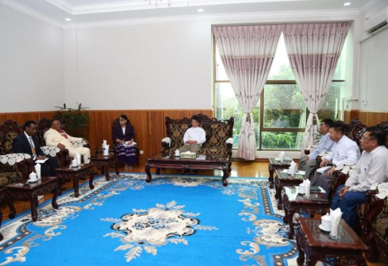 U Myint Kyaing, Union Minister for Immigration and Population, met Mr Daba Debele Hunde, Ambassador of the Federal Democratic Republic of Ethiopia to Myanmar, in Nay Pyi Taw yesterday.