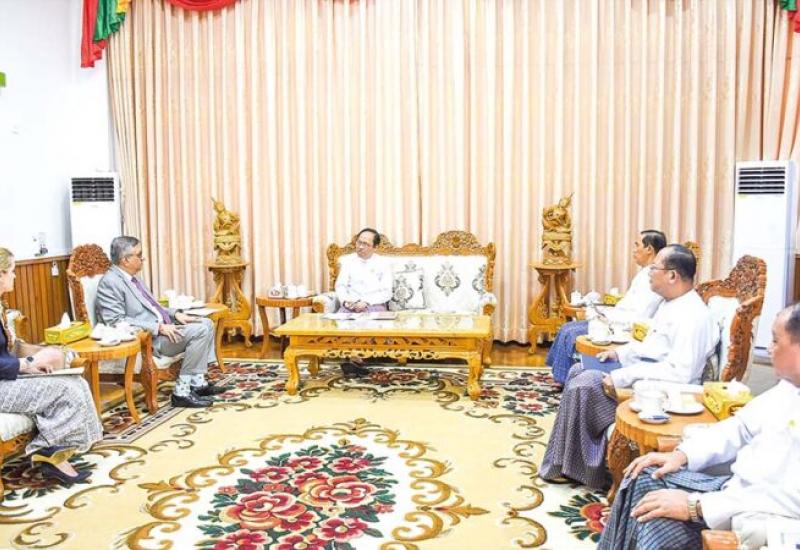 UNION Minister for Investment and Foreign Economic Relations Dr Kan Zaw received Mr Sanjay Mathur, Asia Regional Director of the United Nations Office for Project Services (UNOPS) and his delegation at the Ministry of Investment and Foreign Economic Relations in Nay Pyi Taw yesterday.