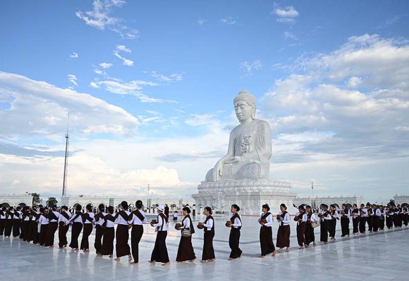 DAW Kyu Kyu Hla, wife of Chairman of the State Administration Council Prime Minister Senior General Min Aung Hlaing, attended the Dhamma ceremony to mark the Buddha Day which falls on full moon of Kason 1386 ME at Agga Dipati Sasana Beikman in the precinct of Maravijaya Buddha Park in Nay Pyi Taw yesterday evening.