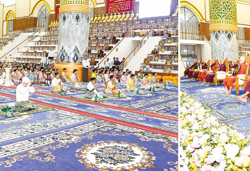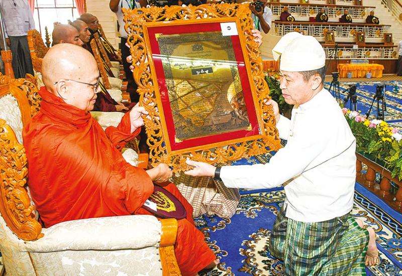 A ceremony to honour 112 members of the Sangha who passed the 76th Tipitakadhara Tipitakakovida Selection Examination organized by the Religious Affairs Department of the Ministry of Religious Affairs and Culture took place in conjunction with the certificate offering ceremony at Maha Pasana Cave on Thiri Mingala Kaba Aye Hill in Yangon yesterday.