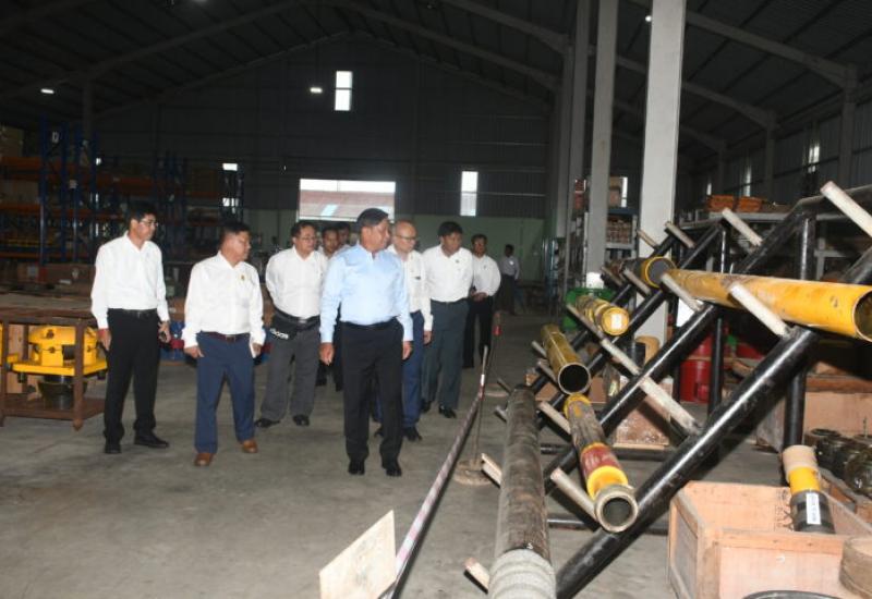 Union Minister for Ministry 1 of the President’s Office U Tin Aung San, in his capacity as Chairman of the Electricity and Energy Development Commission, yesterday inspected the offshore oil supply base (Thakayta), in Thakayta Township, Yangon.