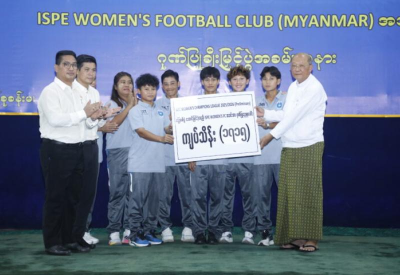 Union Minister for Sports and Youth Affairs and for Hotels and Tourism Jeng Phang Naw Taung attended the ceremony honouring ISPE Women’s Football Club (Myanmar) for its success in the AFC Women’s Champions League 2025/2026 (Preliminary) at the Yangon Region Sports and Physical Education Institute’s Union Hall in Kyaikkasan, Tamway Township, Yangon, yesterday.