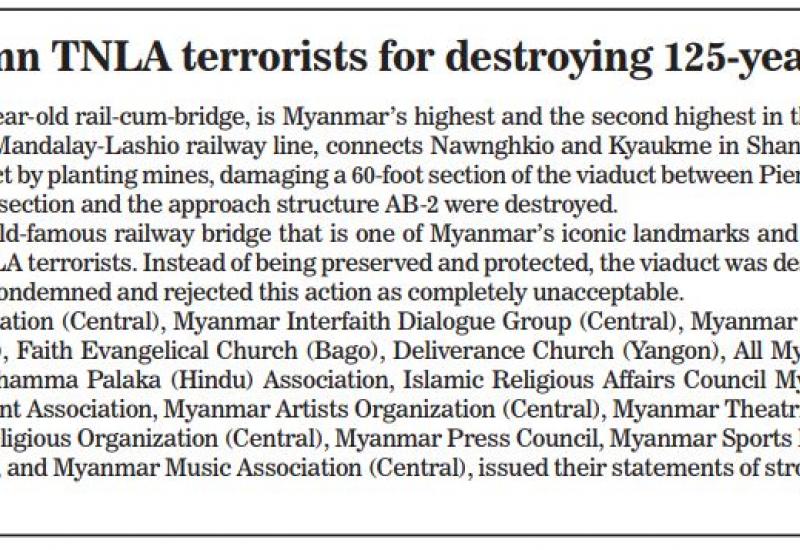 Organizations condemn TNLA terrorists for destroying 125-year-old Gokteik Viaduct