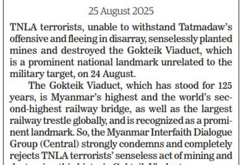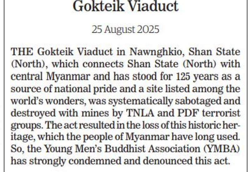 YMBA (Central) condemns TNLA and PDF attacks on historic Gokteik Viaduct