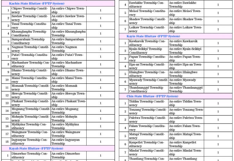 Announcement of Region Hluttaw or State Hluttaw Constituencies