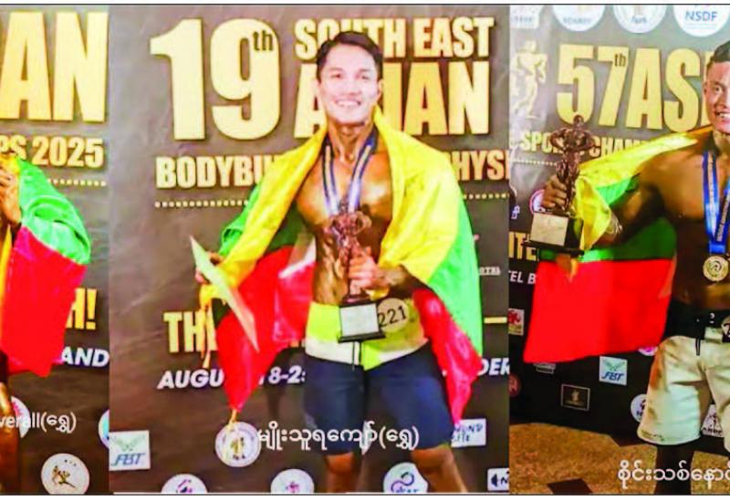 The Myanmar national bodybuilding and physique sports athletes won the Champion of Champions Overall Champion trophy along with four gold, two silver, and three bronze medals at the XIX Southeast Asian Bodybuilding and Physique Sports Championship held in Bangkok, Thailand, from 18 to 25 August.
