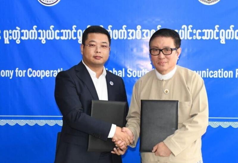 The signing ceremony for Cooperation in the Global South Joint Communication Partnership Programme between the Myanmar Narrative Think Tank and Xinhua News Agency was held yesterday morning at the meeting hall of the Division of Research and Information (Yangon) on Pansodan Street, Kyauktada Township, Yangon.