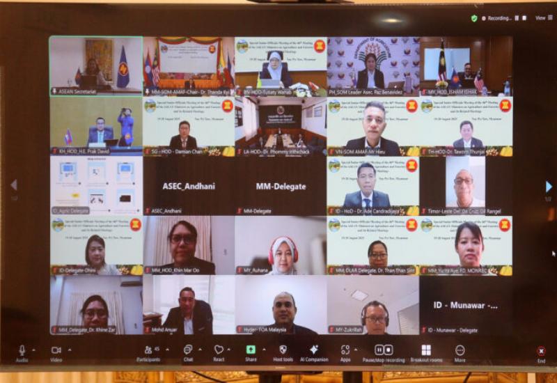 Director-General Dr Thandar Kyi of the Planning Department of the Ministry of Agriculture, Livestock and Irrigation virtually presided over the Special Senior Officials Meeting of the 46th Meeting of the ASEAN Ministers on Agriculture and Forestry and its related meetings on 19-20 August.