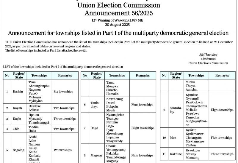 Republic of the Union of Myanmar Union Election Commission Announcement 56/2025