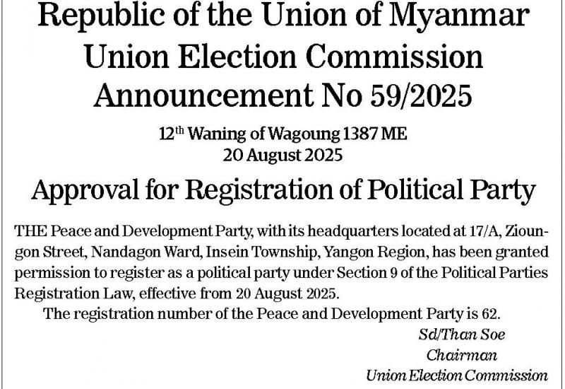 Republic of theUnion of Myanmar Union Election Commission Announcement No 59/2025