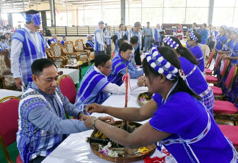 Union Minister for Border Affairs and for Ethnic Affairs Lt-Gen Yar Pyae, accompanied by Taninthayi Region Chief Minister U Myat Ko, Deputy Minister for Ethnic Affairs U Zaw Aye Maung, and relevant officials, attended the traditional Kayin white thread-tying ceremony at Shwewei Thiri futsal court in Dawei, Taninthayi Region, yesterday.