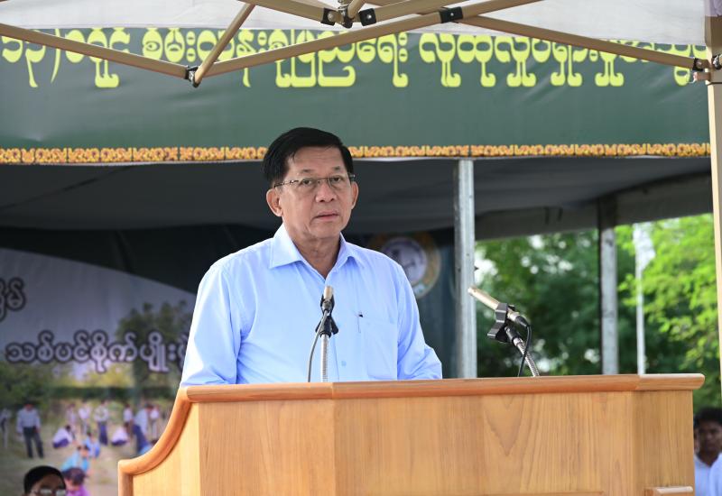The national-level public movement tree-growing ceremony 2025 in Minbu Township, Minbu District, Magway Region, to green 13 dry zones took place at the place between mileposts 4/7 and 5/0 on MinbuPadan-An road in Minbu Township this morning, attended by Chairman of the State Security and Peace Commission of the Republic of the Union of Myanmar Senior General Min Aung Hlaing, who grew a neem sapling.