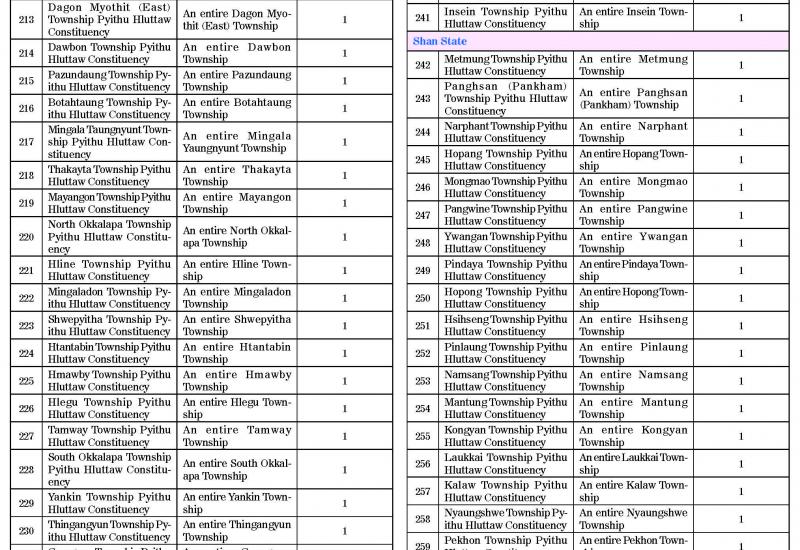 Constituencies designated for the 2025 multiparty democratic general election for the Pyithu Hluttaw (the First-Past-the-Post System)