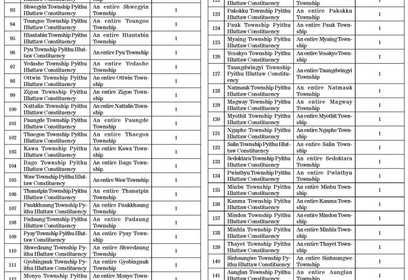 Constituencies designated for the 2025 multiparty democratic general election for the Pyithu Hluttaw (the First-Past-the-Post System)