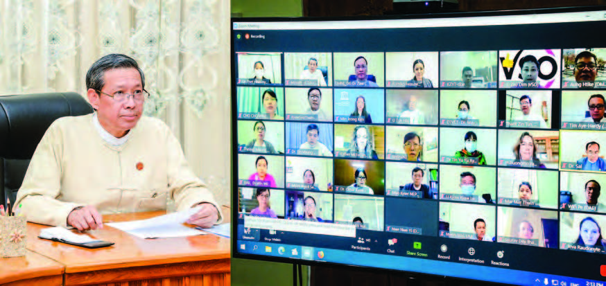 In sharing experiences concerning leadership roles to achieve good healthcare system under COVID-19 outbreak situations, Chairman U Win Thein highlighted such Myanmar’s experiences that Myanmar has comprised of National Central Committee on COVID-19 Prevention; Control and Treatment, and under the guidance of this Committee COVID-19 Prevention; Control and Emergency Response is monitoring and caring those people infected by coronavirus and relating contact persons; controlling processes on community quarantine if necessary, providing food; health care and motivation processes, outlining COVID-19 Economic Relief Plan (CERP) and its Action Plan to solve inadequate food and shelter issues; and unemployment problems, and implementing cooperation in ASEAN region grounded on the type of e-development form. And, there have success fully launched on “Training and Development in the Age of COVID-19 Challenges and Opportunities” and the “Building ASEAN Public Service Capabilities for the Future” through ASEAN Network of Public Service Training Institutes (PSTIs). He also shared the UCSB’s experiences on conducting the Basic Course for Junior Civil Service Officers delivering the lectures to 100 trainees at each Central Institute of Civil Service via online.