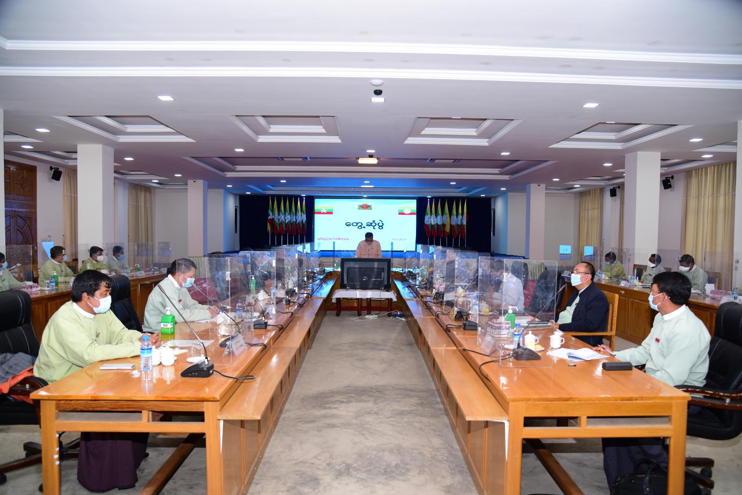 ရှမ်းပြည်နယ်အစိုးရအဖွဲ့ ပြည်နယ်ဝန်ကြီးချုပ် ဒေါက်တာလင်းထွဋ်၊ ပြည်နယ်ဝန်ကြီးများ၊ အစိုးရအဖွဲ့ အတွင်းရေးမှူးနှင့် ကိုယ်ပိုင် အုပ်ချုပ်ခွင့်ရ တိုင်းဒေသကြီးများမှ ညွှန်ကြားရေးမှူးများ၊ ခရိုင်အုပ်ချုပ်ရေးမှူးများနှင့် တွေ့ဆုံခြင်းကို ယနေ့နံနက် (၁၀) နာရီခွဲအချိန်က တောင်ကြီးမြို့ ရှမ်းပြည်နယ်အစိုးရအဖွဲ့ရုံး အစည်းအဝေးခန်းမ၌ ကျင်းပသည်။