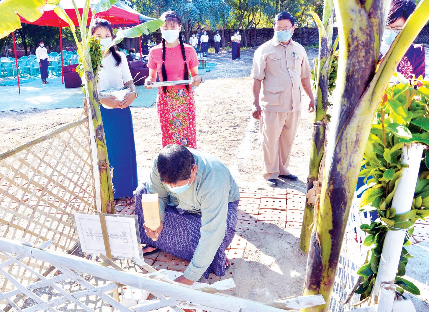 အခမ်းအနားတွင် နေပြည်တော် ကောင်စီဝင် ဦးတင်ထွန်းနှင့် တာဝန်ရှိသူများက ပန္နက်ကိုးချက် တင်၍ အမွှေးနံ့သာရည်များ ပက်ဖျန်းပေးကြ သည်။