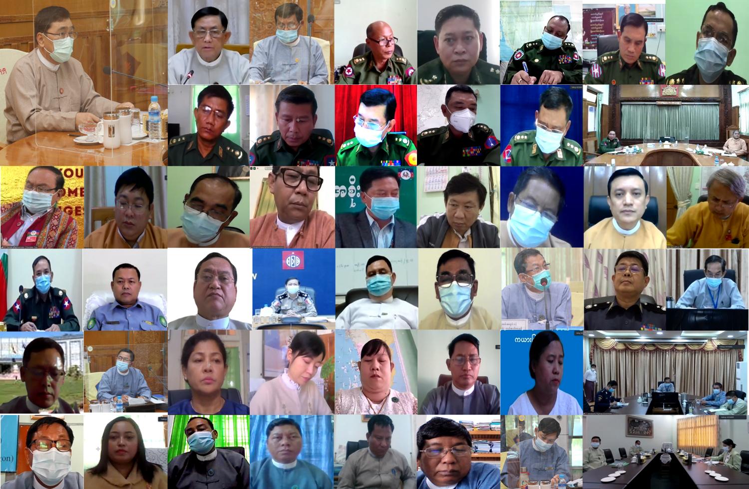ယင်းနောက် လုပ်ငန်းကော်မတီ(၂)ခု၏ အဖွဲ့ဝင်များဖြစ်သည့် နေပြည်တော်ကောင်စီနှင့် တိုင်းဒေသကြီး/ပြည်နယ်များမှ လုံခြုံရေးနှင့်နယ်စပ်ရေးရာဝန်ကြီးများ၊ စီမံကိန်း၊ဘဏ္ဍာရေးနှင့် စည်ပင်သာယာရေးဝန်ကြီးများ၊ ဝန်ကြီးဌာနများမှအမြဲတမ်းအတွင်းဝန်များ၊ ညွှန်ကြားရေး မှူးချုပ်များက ဘေးဖြစ်ပွားမှုအခြေအနေများ၊ ရေကြီးရေလျှံမှုများ၊ ကမ်းပြိုကာကွယ်ရေး၊ နယ်စပ် မြစ်ချောင်းများ ထိန်းသိမ်းရေးလုပ်ငန်းများ၊ သစ်တောသစ်ပင် စိုက်ပျိုးရေး၊ ရေရှားပါးမှု တို့အတွက် ဆောင်ရွက်မှုအခြေအနေများ၊ Cyclone Shelterများ လိုအပ်မှုအခြေအနေ၊ အရေးပေါ် တုံ့ပြန် ရေးလုပ်ငန်းများအတွက် ရှာဖွေကယ်ဆယ်ရေးနှင့် အခြားပစ္စည်းကိရိယာများ အသုံးပြုမှုနှင့် လိုအပ်မှုအခြေအနေများ၊ IDP များနှင့်ပတ်သက်၍ ဆောင်ရွက်မှုအခြေအနေ များနှင့် ရန်ပုံငွေ သုံးစွဲမှု၊ လိုအပ်မှုအခြေအနေများကို ဆွေးနွေးတင်ပြကြသည်။