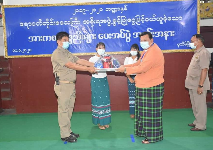 ထို့နောက် ဧရာဝတီတိုင်းဒေသကြီး အစိုးရအဖွဲ့ဝန်ကြီးချုပ် ဦးလှမိုးအောင်၊ တိုင်းဒေသကြီး အားကစားနှင့် ကာယပညာ ကော်မတီဥက္ကဋ္ဌ၊ တိုင်းဒေသကြီးအစိုးရအဖွဲ့ လုံခြုံရေးနှင့် နယ်စပ်ရေးရာဝန်ကြီး ဗိုလ်မှူးကြီးကျော်စွာလှိုင်၊ တိုင်းဒေသကြီး လူမှုရေးဝန်ကြီး ဒေါက်တာလှမြတ်သွေးတို့က တိုင်းဒေသကြီး အားကစားနှင့် ကာယပညာ ဦးစီးဌာန၊ ညွှန်ကြားရေးမှူးနှင့် ခရိုင်တာဝန်ခံများထံသို့ အားကစား အထောက်အကူပြု ပစ္စည်များအား ပေးအပ်ခဲ့သည်။