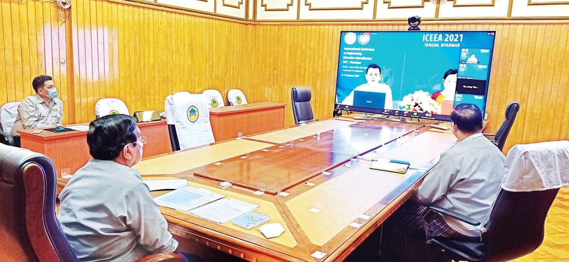 ဝါရှင်တန် သဘောတူညီချက် (Washington Accord) အပြည့်အဝအဖွဲ့ဝင် ဖြစ်မြောက်ရေး နိုင်ငံတကာ အင်ဂျင် နီယာပညာရပ် ဆိုင်ရာ ညီလာခံကို ယနေ့ မွန်းလွဲပိုင်းတွင် ရန်ကုန်မြို့ လမ်းမတော်မြို့နယ် ခရေပင်လမ်း အမှတ်(5A) မြန်မာနိုင်ငံ အင်ဂျင်နီယာ ကောင်စီရုံး၌ ကျင်းပရာ မြန်မာ နိုင်ငံ အင်ဂျင်နီယာကောင်စီနာယက ဆောက်လုပ်ရေးဝန်ကြီးဌာန ပြည်ထောင်စုဝန်ကြီး ဦးဟန်ဇော် နေပြည်တော်မှ ဗီဒီယိုကွန်ဖရင့်စနစ်ဖြင့် တက်ရောက်သည်။