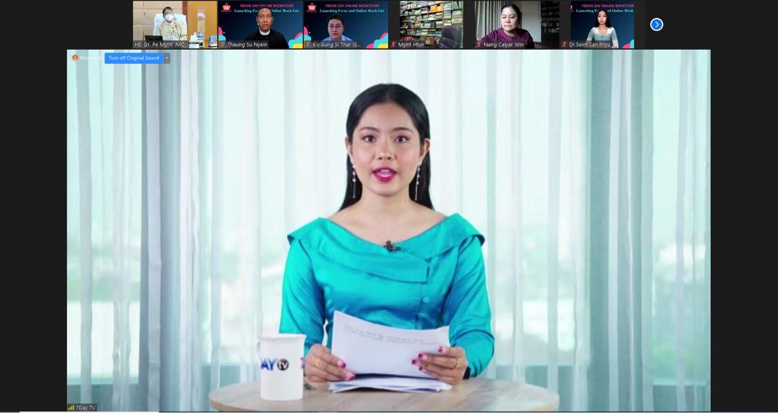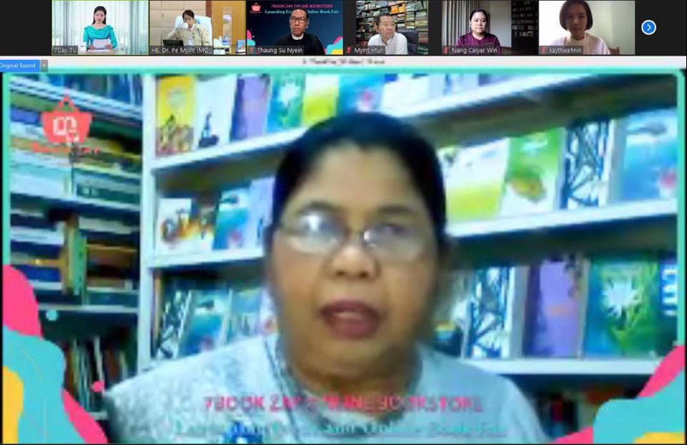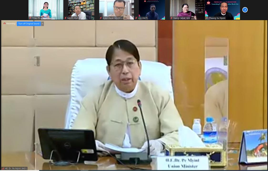 စာပေထုတ်ဝေဖြန့်ချိရေးကဏ္ဍအား ဒီဂျစ်တယ်စီးပွားရေး လုပ်ငန်းသစ်တစ်ခုအဖြစ် ပိုမိုတိုးတက်အောင်မြင်စေရေးနှင့် ပံ့ပိုးကူညီပေးနိုင်ရေး အတွက် 7 Book Zay Online Bookstore (7BookZay.com) မိတ်ဆက်ပွဲ အခမ်းအနားကို ယနေ့နံနက်(၁၀)နာရီက Virtual စနစ်ဖြင့် ကျင်းပရာ ပြန်ကြားရေးဝန်ကြီးဌာန၊ ပြည်ထောင်စုဝန်ကြီး ဒေါက်တာဖေမြင့် တက်ရောက်ခဲ့သည်။