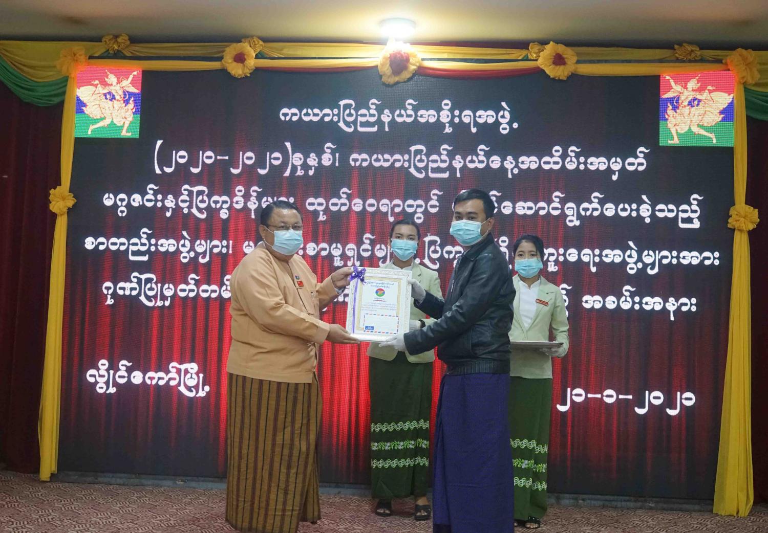 ကယားပြည်နယ်နေ့ အထိမ်းအမှတ် မဂ္ဂဇင်းနှင့် ပြက္ခဒိန်ထုတ်ဝေရာတွင် ပါဝင်ဆောင်ရွက်ခဲ့သည့် စာတည်းအဖွဲ့များ၊ မဂ္ဂဇင်းစာမူရှင်များ၊ ပြက္ခဒိန်ရိုက်ကူးရေး အဖွဲ့များအား ဂုဏ်ပြုမှတ်တမ်းလွှာနှင့် ဂုဏ်ပြုငွေများပေးအပ်သည့် အခမ်း အနားကို ယနေ့ နံနက်ပိုင်းက ကယားပြည်နယ်အစိုးရအဖွဲ့ရုံး အစည်းအဝေးခန်းမ၌ ကျင်းပပြုလုပ်ခဲ့သည်။