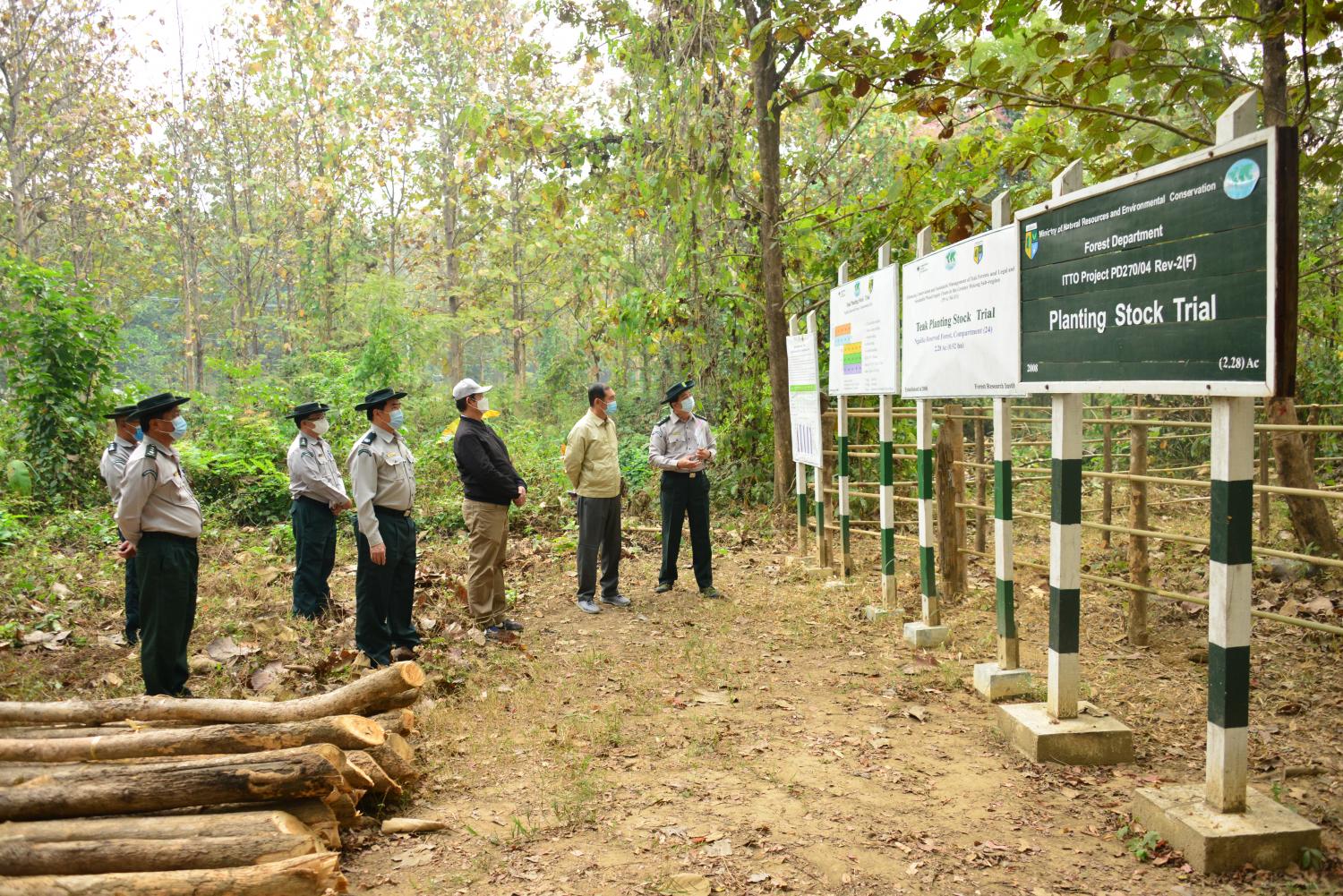 ဆက်လက်၍ ပြည်ထောင်စုဝန်ကြီးနှင့်အဖွဲ့သည် နေပြည်တော် - တောင်တွင်းကြီး လမ်းဘေးတွင် ၂၀၀၈ ခုနှစ်က တည်ထောင် ထားရှိသည့် တစ်ရှူးနည်း ၊ အညွန့်ကိုင်းထိုးခြင်း၊ ပျိုးအိတ်၊ လက်ဆက်သည့်ကိုင်းထိုးနည်း နှင့် ကိုင်းကူးကိုင်းဆက်နည်း နည်း(၅)မျိုးဖြင့် စမ်းသပ် ပျိုးထောင်၍ block (၅)ခုခွဲကာ စိုက်ပျိုးထားသည့် planting stock trail (၂ ဒသမ ၂၈) ဧကကို လည်းကောင်း၊ ၂၀၂၀ ပြည့်နှစ်က တည်ထောင်ထားရှိသည့် ကျွန်းမျိုးသန့် ဥယျာဉ်(၂)ဧကကို လည်းကောင်း၊ ၂၀၀၀ ပြည့်နှစ်က တည်ထောင်ထားရှိသည့် ကျွန်းရော နှောစမ်းသပ်ကွက် (၁ ဒသမ ၅) ဧကကိုလည်းကောင်း၊ ၂၀၁၈ ခုနှစ်က တည်ထောင်ထားရှိ သည့် ခန္ဓာပိုင်းမျိုးထုတ်ဥယျာဉ် (၂) ဧက ကိုလည်းကောင်း၊ ၁၉၈၈ ခုနှစ်က တည်ထောင် ထားရှိသည့် ကျွန်းအနက်စင်း စမ်းသပ် ကွက်(၆)ဧက၊ ၁၉၈၀ ခုနှစ်က တည်ထောင် ထားရှိသည့် ပိတောက်ကိုင်းချိုင်ခြင်း စမ်းသပ်ကွက် (၁၀)ဧကတို့ကို လှည့်လည်စစ် ဆေးခဲ့ပြီး လိုအပ်သည်များကို မှာကြားခဲ့ကြောင်း သိရသည်။