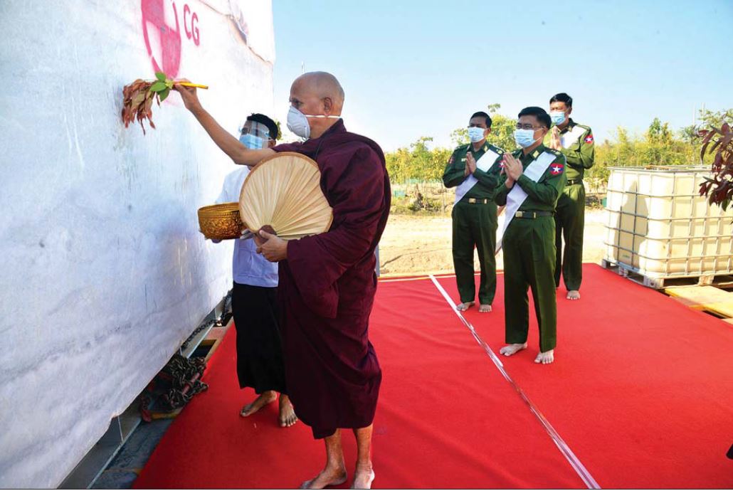 အဆိုပါ ဘူမိဖဿမုဒြာ ထိုင်တော်မူ ကျောက်ဆစ်ဗုဒ္ဓရုပ်ပွားတော်မြတ်ကြီး၏ ပလ္လင်တော်အပိုင်း ၁ နှင့် အပိုင်း ၄ အစိတ်အပိုင်းများအား ကြိုဆိုပင့်ဆောင်ခြင်း မဟာမင်္ဂလာ အခမ်းအနားကို ယနေ့ မွန်းလွဲပိုင်းတွင် ကျင်းပရာ နေပြည်တော်ကောင်စီ နယ်မြေ ဒက္ခိဏသီရိမြို့နယ် သံဃ နာယကဥက္ကဋ္ဌ ဆရာတော် ဘဒ္ဒန္တပဏ္ဍိတ အမှူးပြုသော ဆရာတော်၊ သံဃာတော် အရှင်သူမြတ်များ ကြွရောက်ချီးမြှင့်တော်မူကြပြီး ကာကွယ်ရေးဦးစီးချုပ်ရုံး(ကြည်း)မှ ဒုတိယ ဗိုလ်ချုပ်ကြီး သန်းထွန်းဦး၊ စစ်ထောက်ချုပ် ဒုတိယဗိုလ်ချုပ်ကြီး ကျော်စွာလင်း၊ ဒုတိယ ဗိုလ်ချုပ်ကြီး ကံမြင့်သန်း၊ တပ်မတော်အရာရှိကြီးများ၊ နေပြည်တော်တိုင်းစစ်ဌာနချုပ် ဒုတိယ တိုင်းမှူးနှင့် ဖိတ်ကြားထားသည့် ဧည့်သည်တော်များ တက်ရောက်ကြသည်။