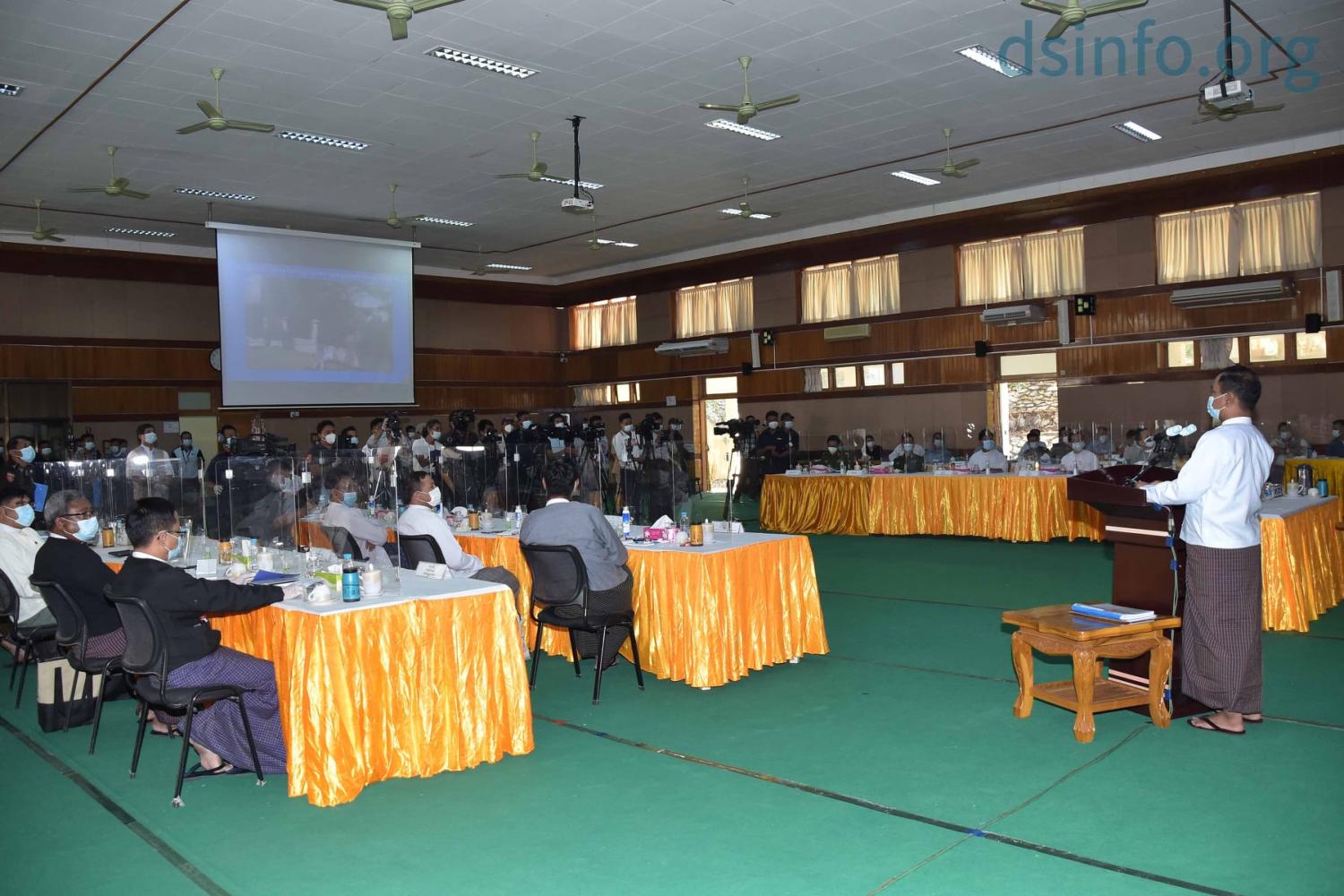 လက်ရှိအချိန်တွင် နိုင်ငံအတွင်းရှိ အချို့မြို့ကြီးများ၌ ဆူပူဆန္ဒပြမှု များ ဖြစ်ပေါ်လျက်ရှိပြီး နိုင်ငံတော်တည်ငြိမ်အေးချမ်းရေးနှင့် အများပြည်သူ တို့၏ လုံခြုံရေး၊ တရားဥပဒေစိုးမိုးရေးနှင့် ရပ်ရွာအေးချမ်းသာယာရေးကို ထိခိုက် ပျက်ပြားစေသည့်အပြင် ရုန်းရင်းဆန်ခတ်မှုများ ဖြစ်ပွားလာနိုင်သဖြင့် ရာဇဝတ်ကျင့်ထုံး ဥပဒေပုဒ်မ-၁၄၄ ကိုထုတ်ပြန်၍ လူ ဦး သို့မဟုတ် ဦးထက်ပို၍ လူစုဝေးခြင်းမပြုရန် တားမြစ်ချက်များအား ထုတ်ပြန်ထားရှိသော် လည်း  နေပြည်တော်၊ မန္တလေး၊ ရန်ကုန်၊ မော်လမြိုင်၊ မြစ်ကြီးနားမြို့နှင့် ပုသိမ်မြို့တို့တွင် ဆူပူဆန္ဒပြသူများက ဆူပူမှုမဖြစ်ပေါ်စေရန် ထိန်းသိမ်း ဆောင်ရွက်လျက်ရှိသည့် တပ်မတော်သားများ၊ မြန်မာနိုင်ငံရဲတပ်ဖွဲ့ဝင်များနှင့် ပရဟိတလူမှုရေးအသင်းများမှ မော်တော်ယာဉ်များ၊ ယာဉ်မောင်းများကို အကြမ်းဖက်တိုက်ခိုက်မှုများ ပြုလုပ်လာခဲ့သည့် အခြေအနေများ၊  တိုင်းဒေသ ကြီးနှင့် ပြည်နယ်အလိုက် ရပ်ရွာအေးချမ်းသာယာမှုရှိစေရေးအတွက် လုံခြုံ ရေးတပ်ဖွဲ့ဝင်များက နေ့၊ ညမပြတ် လုံခြုံရေး ဆောင်ရွက်လျက်ရှိသည့် အခြေ အနေများ၊ နိုင်ငံတော်စီမံအုပ်ချုပ်ရေးကောင်စီလက်ထက် ပြည်ထောင်စုရွေး ကောက်ပွဲကော်မရှင်၏ သတင်းထုတ်ပြန်ချက်များ ထုတ်ပြန်ခဲ့သည့် အခြေအနေ များ၊အကြောင်းအမျိုးမျိုးကြောင့် နိုင်ငံ့တာဝန်ထမ်းဆောင်ရန် ပျက်ကွက်နေ ကြသည့် နိုင်ငံ့ဝန်ထမ်းများသို့ အသိပေးကြေညာချက်များ ထုတ်ပြန်ဆောင်ရွက် ခဲ့သည့်အခြေအနေများကို PowerPoint Presentation များ၊ Video Clip များဖြင့် အကျယ်တဝင့် ရှင်းလင်းပြောကြားသည်။