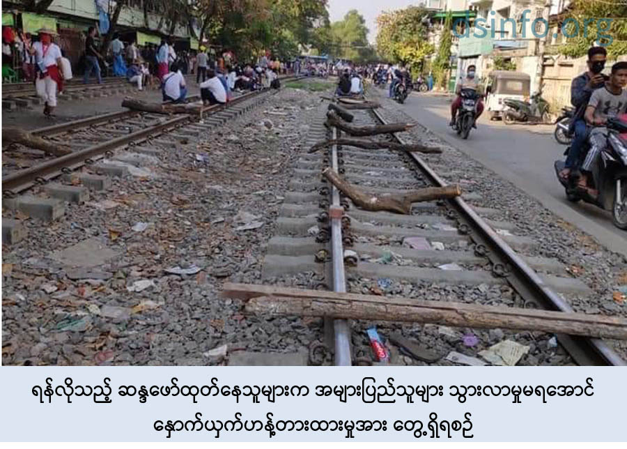 နေပြည်တော်၊ ဖေဖော်ဝါရီ - ၁၈ လက်ရှိအချိန်တွင် နိုင်ငံအတွင်းရှိ အချို့မြို့ကြီးများ၌ ဆူပူဆန္ဒပြမှုများ ဖြစ်ပေါ်လျက်ရှိပြီး ဆူပူလှုံ့ဆော်ဆန္ဒပြသူများအနေဖြင့် အစိုးရလုပ်ငန်းယန္တရား လည်ပတ်မှုကို အနှောင့် အယှက်ဖြစ် စေရန် လမ်းကြောင်းပိတ်ဆို့ခြင်းများ၊ ပုံမှန် လုပ်ငန်းတာဝန်ထမ်းဆောင်လျက်ရှိသည့် ဝန်ထမ်း များကို နှောင့်ယှက်ခြိမ်း ခြောက်ခြင်းများ စသည့် အဖျက်အမှောင့်လုပ်ရပ်များကို ပြုလုပ် လျက်ရှိ သည်။ ထိုသို့ ဥပဒေမဲ့လုပ်ရပ်များကို ကျူးလွန်လျက်ရှိရာ ဖေဖော်ဝါရီ ၁၇ ရက် တွင်လည်း မန္တလေး တိုင်းဒေသကြီးနှင့် ဆက်စပ်လျက်ရှိသော တိုင်းဒေသကြီးနှင့် ပြည်နယ်ဒေသများသို့ မီးရထား ခရီးစဉ်များပြန်လည်ပြေးဆွဲနိုင်ရေးအတွက် မန္တလေး-သာစည် မီးရထား လမ်းပိုင်းနှင့် စက်ခေါင်း များအား စစ်ဆေးပြင်ဆင်ဆောင်ရွက်လျက် ရှိသည့် မြန်မာ့မီးရထားမှ တာဝန်ရှိသူများ၏ လုပ်ငန်း တာဝန်ထမ်းဆောင်နေမှုများ ကိုလည်း နှောင့်ယှက်မှုများပြုလုပ်ခဲ့ ကြောင်းသိရှိရသည်။ ဖြစ်စဉ်မှာ မြန်မာ့မီးရထားမှ အထက်မြန်မာပြည်အထွေထွေမန်နေဂျာ ဦးဆောင်သော မြန်မာ့ မီးရ ထားမှ တာဝန်ရှိသူများသည် တပ်မတော်သားများနှင့် မြန်မာနိုင်ငံရဲတပ်ဖွဲ့ဝင်များလိုက်ပါလျက် ဖေဖော်ဝါရီ ၁၇ ရက် ညနေ ၄ နာရီခန့်တွင် မန္တလေး-သာစည် မီးရထားလမ်းပိုင်းနှင့် စက်ခေါင်းများ အား စစ်ဆေးပြင်ဆင် ဆောင်ရွက်လျက်ရှိစဉ် ဆူပူလှုံ့ဆော်ဆန္ဒပြသူ ၁၀၀ ဦးခန့်က ချမ်းအေး သာစံမြို့နယ်၊ ၇၈ x ၇၉ လမ်းကြား၊ ၃၄ လမ်းအနီးရှိ မီးရထားသံလမ်းများတွင် ခရီးသွားပြည်သူ များစီးနင်းမည့် မီးရထားများ ခုတ်မောင်းမှုမပြုနိုင်စေရန် သံချောင်းများချထားခြင်း၊ သစ်တုံးများ၊ ကျောက်ခဲများဖြင့် ပိတ်ဆို့ခြင်းများပြုလုပ်ပြီး ဆူပူဆန္ဒပြခြင်းများကို ဆက်လက်ပြုလုပ်လာခဲ့သည်။ ထိုသို့ပြုလုပ်ခြင်းများကြောင့် မြန်မာ့မီးရထားမှ အထက်မြန်မာပြည်အထွေထွေ မန်နေဂျာ၊ မြို့နယ် အုပ်ချုပ်ရေးမှူးနှင့် တာဝန်ရှိသူများက ဆူပူလှုံ့ဆော်ဆန္ဒပြသူ များအား တွေ့ဆုံ၍ အများပြည်သူ များ၏ ခရီးသွားလာမှု လွယ်ကူချော့မွေ့စေရေး ဆောင်ရွက် နေသည်ကို နှောင့်ယှက်ခြင်းများ မပြုလုပ်ကြရန် မေတ္တာရပ်ခံခဲ့သည်။ ထို့နောက် လုံခြုံရေးတပ်ဖွဲ့ဝင်များက ၎င်းတို့ပိတ်ဆို့ထားသည့် အတားအဆီးများကို ဖယ်ရှားဆောင်ရွက်စဉ် ဆူပူလှုံ့ဆော်ဆန္ဒပြသူများက လုံခြုံရေး တပ်ဖွဲ့ဝင် များအား ရထားလမ်း ဝဲ၊ယာမှ ကျောက်ခဲများဖြင့် ပစ်ပေါက်ခြင်း၊ တုတ်၊ ဓားများဖြင့် ပစ်ပေါက် ရန်ပြုလာသောကြောင့် မြန်မာနိုင်ငံရဲ တပ်ဖွဲ့ဝင်များက သတိပေးပြီး အနည်းဆုံးအင်အား၊ အနိမ့်ဆုံးအဆင့်ဖြင့် ရာဘာကျည်များဖြင့် ပြန်လည်ခြောက်လှန့် ပစ်ခတ်ခဲ့ရသည်။ ည ၉ နာရီ