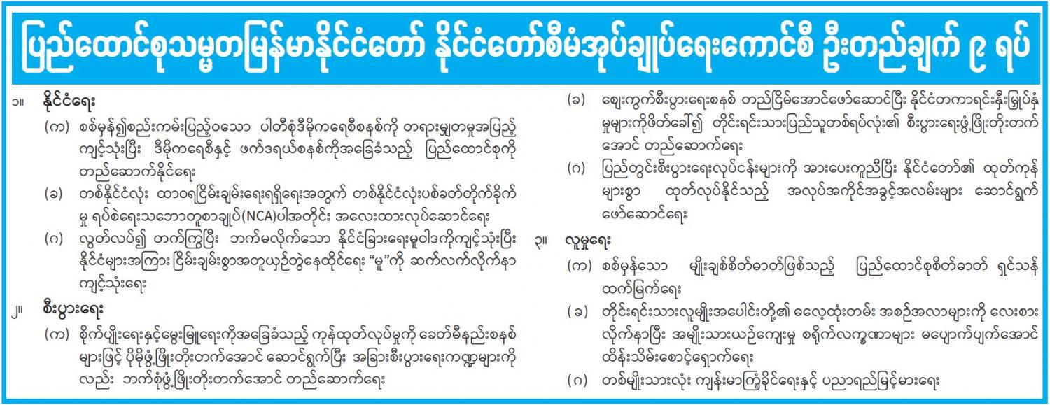 ပြည်ထောင်စုသမ္မတမြန်မာနိုင်ငံတော် နိုင်ငံတော်စီမံအုပ်ချုပ်ရေးကောင်စီ ဦးတည်ချက် ၉ ရပ် 02/24/2021 ပြည်ထောင်စုသမ္မတမြန်မာနိုင်ငံတော် နိုင်ငံတော်စီမံအုပ်ချုပ်ရေးကောင်စီ ဦးတည်ချက် ၉ ရပ်