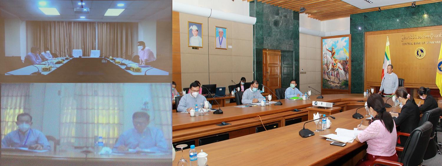 မြန်မာနိုင်ငံတော်ဗဟိုဘဏ်နေပြည်တော်၊ ရန်ကုန်ဘဏ်ခွဲနှင့် မန္တလေးဘဏ်ခွဲတို့၏ လုပ်ငန်း ညှိနှိုင်းအစည်းအဝေးကို ယနေ့ နံနက် ၁၁ နာရီတွင် နေပြည်တော်ရှိ ဒါရိုက်တာအဖွဲ့ အစည်း အဝေးခန်းမ၌ ဗီဒီယို ကွန်ဖရင့်စနစ်ဖြင့်ကျင်းပသည်။