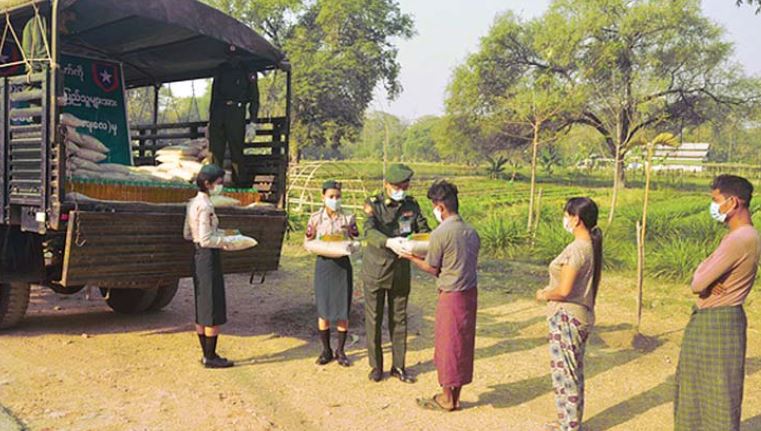 နေပြည်တော် မတ် ၄ နိုင်ငံတော်နှင့် တပ်မတော်အတွက် အသက်ပေးလှူခဲ့ရသည့် အရာရှိ၊ စစ်သည်များ၏ မိသားစုဝင်များ၊ စစ်မှုထမ်းဟောင်း အဖွဲ့ဝင်များနှင့် မိသားစုဝင်များ၊ ရဲမှုထမ်းဟောင်း အဖွဲ့ဝင်များ၊ ပြည်သူ့စစ်(ဌာနေ) တပ်ဖွဲ့ဝင်များနှင့် မီးသတ်တပ်ဖွဲ့ ဝင်များ စားရေးအခက်အခဲမရှိ စေရန် ဆန်၊ ဆီ၊ ဆား၊ ပဲ အမယ်လေးမျိုးနှင့် ကိုဗစ်-၁၉ ရောဂါ ကာကွယ်ရေးအထောက်အကူပြု ပစ္စည်းများကို လည်းကောင်း၊ နိုင်ငံတော်ကာကွယ်ရေးနှင့် လုံခြုံ (ရေး တာဝန်ထမ်းဆောင်လျက် ရှိသော တပ်မတော်သား များနှင့် မြန်မာနိုင်ငံရဲတပ်ဖွဲ့ဝင်များအတွက် ဆေးဝါးများ၊ စားသောက်ဖွယ်ရာ များနှင့် ချီးမြှင့်ငွေ များကို လည်းကောင်း သက်ဆိုင်ရာ တိုင်းစစ်ဌာနချုပ်များ၊ စစ်မှုထမ်းဟောင်းရုံး အိမ်ရာများ၊ တပ်နယ်ခန်းမများ၊ ရဲတပ်ဖွဲ့မှူးရုံးများနှင့် သက်ဆိုင်ရာရဲစခန်းများ၌ ပေးအပ်လျက်ရှိသည်။ ထိုသို့ပေးအပ်လျက်ရှိရာ ယနေ့တွင် ရှမ်းပြည်နယ်တောင်ပိုင်း မိုးနဲမြို့နှင့် မိုင်းရှူးမြို့ တို့ရှိ စစ်မှုထမ်းဟောင်းအဖွဲ့ဝင်များ၊ မြန်မာနိုင်ငံရဲ တပ်ဖွဲ့ဝင်များ၊ မီးသတ်တပ်ဖွဲ့ဝင်များအား အရှေ့ အလယ်ပိုင်းတိုင်း စစ်ဌာနချုပ် တိုင်းမှူး ဗိုလ်မှူးချုပ် နိုင်နိုင်ဦးနှင့်တာဝန်ရှိသူများကလည်းကောင်း၊ ဧရာဝတီတိုင်းဒေသကြီး မြောင်းမြ မြို့ရှိ မြန်မာနိုင်ငံရဲ တပ်ဖွဲ့ဝင်များ အား အနောက်တောင်တိုင်းစစ်ဌာန ချုပ်မှ တာဝန်ရှိသူများက လည်း ကောင်း အသီးသီးသွားရောက် တွေ့ဆုံ၍ ဆန်၊ ဆီ၊ ဆား၊ ပဲအမယ် လေးမျိုးနှင့် စားသောက် ဖွယ်ရာ များကို ပေးအပ်ကာ လိုအပ်သည် များ ညှိနှိုင်းဆောင်ရွက်ပေးသည်။ ထို့ပြင် နိုင်ငံတော်ကာကွယ် ရေးနှင့် လုံခြုံရေးတာဝန်များ ကို ထမ်းဆောင်လျက်ရှိသည့် တပ်မတော်သားများ၊ မြန်မာနိုင်ငံ ရဲတပ်ဖွဲ့ဝင်များနှင့် မီးသတ်တပ်ဖွဲ့ ဝင်များအတွက် အလှူရှင်များက စားသောက်ဖွယ်ရာများ ပေးအပ်လှူဒါန်းရာ တာဝန်ရှိသူများက လက်ခံယူခဲ့ကြကြောင်း သတင်း ရရှိသည်။ သတင်းစဉ်