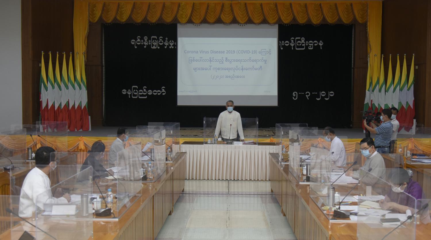 အစည်းအဝေးတွင် လုပ်ငန်းကော်မတီဥက္ကဋ္ဌက နိုင်ငံတော်စီမံအုပ်ချုပ်ရေးကောင်စီ၏ ရှေ့လုပ်ငန်းစဉ် (၅)ရပ်တွင် ကိုဗစ်-၁၉ ကပ်ရောဂါကြောင့် ထိခိုက်ခဲ့သည့် စီးပွားရေးလုပ်ငန်း များအား ဖြစ်နိုင်သမျှ နည်းလမ်းများဖြင့် အမြန်ဆုံးကုစားရေးလည်း ပါဝင်ကြောင်း၊ ကျန်းမာရေး လိုအပ်ချက်အရ ကန့်သတ်ချက်များ ဆက်လက်ဆောင်ရွက်နေရသည့် အခြေအနေကြောင့် စီးပွားရေး လုပ်ငန်းများအနေဖြင့် အခက်အခဲများ ထပ်မံပေါ်ပေါက်လာနိုင်ပါကြောင်း၊ မိမိတို့ လုပ်ငန်းကော်မတီအနေဖြင့် အဆိုပါထိခိုက်မှုများ ဆက်လက်ကုစားရာတွင် ကော်မတီ၏ လုပ်ငန်း တာဝန်များကို ပြန်လည်သုံးသပ်ရေးဆွဲ ဆောင်ရွက်သွားရန် လိုအပ်ပါကြောင်း၊ စီးပွားရေး လုပ်ငန်းများ လျင်မြန်စွာ လည်ပတ်နိုင်ရေးအတွက် ဆက်လက်ဆောင်ရွက် ပေးသင့်သည့် လုပ်ငန်းစဉ်များကို ဝိုင်းဝန်းဆွေးနွေးပေးစေလိုပါကြောင်း။