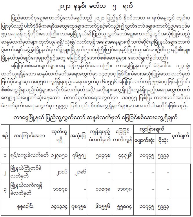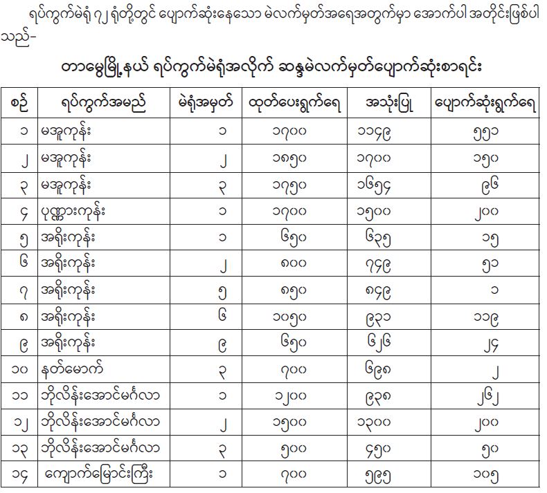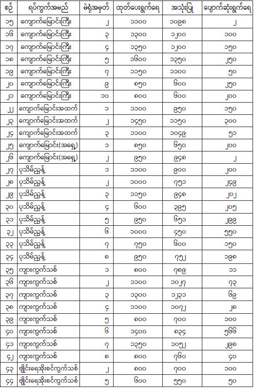 ရန်ကုန်မြို့နှင့် မန္တလေးမြို့အတွက် ရည်ညွှန်းလက်ကားဈေးနှုန်းများနှင့် ပြည်ထောင်စုနယ်မြေ နေပြည်တော်၊ တိုင်းဒေသကြီး/ပြည်နယ် မြို့တော်များအတွက် ရည်ညွှန်းလက်လီဈေးနှုန်းများ