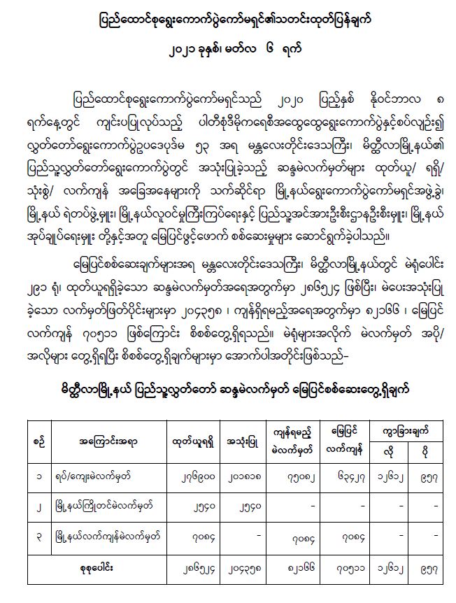 ရန်ကုန်မြို့နှင့် မန္တလေးမြို့အတွက် ရည်ညွှန်းလက်ကားဈေးနှုန်းများနှင့် ပြည်ထောင်စုနယ်မြေ နေပြည်တော်၊ တိုင်းဒေသကြီး/ပြည်နယ် မြို့တော်များအတွက် ရည်ညွှန်းလက်လီဈေးနှုန်းများ