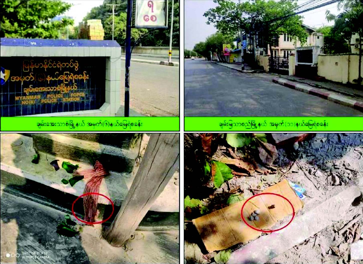 အလားတူ မွန်းလွဲ ၂ နာရီ မိနစ် ၅၀ ခန့်တွင် မဟာအောင်မြေမြို့နယ် ၈၃ လမ်း၊ ၃၅ x ၃၆ လမ်းရှိ ရဲစခန်းအား ဆိုင်ကယ်တစ်စီးနှင့် လူနှစ်ဦး(စိစစ်ဆဲ) က ဓာတ်ဆီပုလင်း တစ်လုံးအား မီးရှို့၍ အကြမ်းဖက် ရန်ပြုပစ်ပေါက်ခဲ့ရာ ရဲစခန်းခြံစည်းရိုးအား ထိမှန် ကျရောက်ခဲ့သဖြင့် လုံခြုံရေး တပ်ဖွဲ့ဝင်များက ပြန်လည်ခြောက်လှန့်ပစ်ခတ်ခဲ့ရာ အဆိုပါအကြမ်းဖက်သူများမှာ မောင်းနှင် ထွက်ပြေးသွားခဲ့ကြောင်း၊ မွန်းလွဲ ၃ နာရီခန့်တွင် ပြည်ကြီးတံခွန်မြို့နယ် မြဝတီမင်းကြီးလမ်းနှင့် ၆၂ လမ်းထောင့်ရှိရဲစခန်းအား ဆိုင်ကယ်တစ်စီးနှင့် လူနှစ်ဦး(စိစစ်ဆဲ)က ဓာတ်ဆီ ပုလင်း တစ်လုံးအား မီးရှို့ကာ အကြမ်းဖက်ရန်ပြု ပစ်ပေါက်ခဲ့ရာ ရဲစခန်းအတွင်းရှိ အိမ်ထောင်သည် လိုင်းခန်းအနီး ကျရောက်ခဲ့သဖြင့် လုံခြုံရေးတပ်ဖွဲ့ဝင်များက ပြန်လည်ခြောက်လှန့်ပစ်ခတ်ခဲ့ရာ အဆိုပါ အကြမ်းဖက်သူများမှာ မောင်းနှင်ထွက်ပြေးသွားခဲ့ကြောင်း သိရသည်။ အလားတူ မဟာအောင်မြေမြို့နယ် ၈၁ လမ်း၊ လမ်း ၄၀ နှင့် ၄၁ လမ်းကြား ရပ်ကွက်အတွင်း လမ်းများ ပိတ်၍ လုံခြုံရေးတပ်ဖွဲ့ဝင်များအား သတင်းပေးဟု စွပ်စွဲကာ အကြမ်းဖက်သူ လူအုပ်စုက ဝင်/ထွက်လမ်းများတွင် တာယာကွင်းများပုံ၍ မီးရှို့ခြင်း၊ အသံပေးလက်လုပ်ဗုံးများ ပစ်ခတ်ခြင်း၊ ညာသံပေးအော်ဟစ်ခြင်း စသည်ဖြင့် မင်းမဲ့စရိုက် ဆန်ဆန် လုပ်ဆောင်လာသောကြောင့် လုံခြုံရေး တပ်ဖွဲ့ဝင်များ အချိန်မီသွားရောက်၍ ဒေသတွင်း အေးချမ်းသာယာရေး၊ တရားဥပဒေ စိုးမိုးရေးအတွက် လူစုခွဲဆောင်ရွက်ခဲ့ရသည်။
