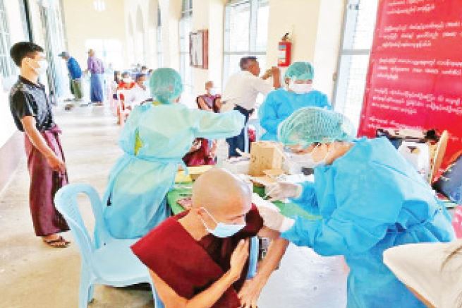 ကာကွယ်ဆေးထိုးနှံပေး ထိုသို့ ဆောင်ရွက်ပေးလျက်ရှိရာ မတ် ၂၀ ရက် တွင် နိုင်ငံတော်စီမံအုပ်ချုပ်ရေး ကောင်စီဥက္ကဋ္ဌ တပ်မတော်ကာကွယ်ရေးဦးစီးချုပ် ဗိုလ်ချုပ်မှူးကြီး မင်းအောင်လှိုင်၏ ကိုကိုးကျွန်းခရီးစဉ်အတွင်း လမ်းညွှန်မှာကြားချက်အရ ယနေ့တွင် ကိုကိုးကျွန်း နေ ဒေသခံပြည်သူများနှင့် ဌာနဆိုင်ရာ ဝန်ထမ်း များအား သတ်မှတ်နေရာ အသီးသီး၌ လည်းကောင်း၊ ရှမ်းပြည်နယ်(မြောက်ပိုင်း) လောက်ကိုင်မြို့ အတွင်းရှိ ဌာနဆိုင်ရာဝန်ထမ်းများနှင့် ဒေသခံတိုင်းရင်းသား ပြည်သူများအား သတ်မှတ်နေရာ၌လည်းကောင်း၊ ရှမ်းပြည်နယ်(တောင်ပိုင်း) ကလောမြို့၊ ဟိုပုံးမြို့၊ မိုးဗြဲမြို့နှင့် ကယားပြည်နယ် လွိုင်ကော်မြို့၊ ဘောလခဲမြို့နယ် များအတွင်းရှိ ထေရ်ကြီးဝါကြီး ဆရာတော်ကြီးများ၊ ဌာနဆိုင်ရာဝန်ထမ်းများနှင့် “ဒေသခံတိုင်းရင်း သားပြည် သူများအား သတ်မှတ် -နေရာအသီးသီး၌လည်းကောင်း၊ ရန်ကုန်တိုင်း ဒေသကြီး မှော်ဘီမြို့နယ်အတွင်းရှိ ထေရ်ကြီးဝါကြီး ဆရာတော်ကြီးများနှင့် စာချ၊ စာသင် သံဃာတော် များအား သတ်မှတ်နေရာ အသီးသီး၌လည်းကောင်း၊ ဧရာဝတီတိုင်းဒေသကြီး ကျောင်းကုန်းမြို့ အတွင်းရှိ သံဃာတော်များ၊ ဌာနဆိုင်ရာဝန်ထမ်းများနှင့် ဒေသခံတိုင်းရင်းသားပြည်သူများအား သတ်မှတ် နေရာအသီးသီး၌လည်းကောင်း၊ ပဲခူးတိုင်းဒေသကြီး ကျောက်တံခါးမြို့အတွင်းရှိဌာနဆိုင်ရာဝန်ထမ်းများ အား သတ်မှတ်နေရာအသီးသီး၌ လည်းကောင်း သက်ဆိုင်ရာတိုင်းစစ်ဌာနချုပ်များမှတပ်မတော်သား ( ပါရဂူများ၊ ဆရာဝန်များနှင့် သူနာပြုများပါဝင်သော ဆေးအဖွဲ့များက CDM တွင် ပါဝင်ခြင်းမရှိဘဲ ပြည်သူလူထု၏ ကျန်းမာရေးစောင့်ရှောက်မှု လုပ်ငန်း များအား ဆောင်ရွက်ပေးနေသည့် ပြည်သူ့ဆေးရုံ များမှ ဆရာဝန်များ၊ ကျန်းမာရေးဝန်ထမ်းများနှင့် အတူ ပူးပေါင်း၍ ကျန်းမာရေးစစ်ဆေးပေးပြီး ( ကိုဗစ်-၁၉ ရောဂါကာကွယ်ဆေးထိုးနှံပေးခြင်းများ ဆောင်ရွက် ပေး ကြသည်။