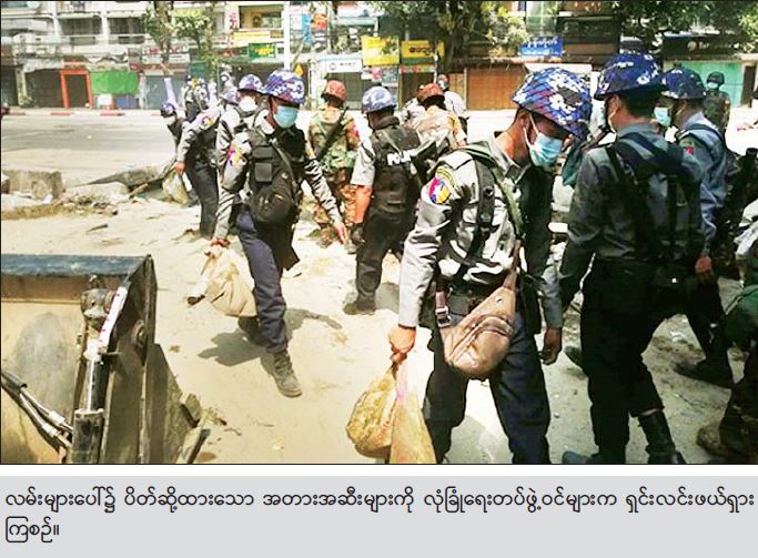 လုံခြုံရေးတပ်ဖွဲ့ဝင်များအနေဖြင့် ဆူပူဆန္ဒပြမှုများနှင့် အကြမ်းဖက်မှုများကို ဥပဒေနှင့်အညီ ဖြိုခွဲထိန်းသိမ်းကာ ဆူပူအကြမ်းဖက်သူများ ပြုလုပ် ပိတ်ဆို့ထားသည့် အတားအဆီးများကိုလည်း လူအင်အား၊ စက်ယန္တရားအင်အားများဖြင့် ရှင်းလင်းဖယ်ရှား၍ အများပြည်သူ ဆက်သွယ်သွားလာမှု အဆင်ပြေစေရေး နေ့စဉ် ဆောင်ရွက်ပေးလျက်ရှိကြောင်း။
