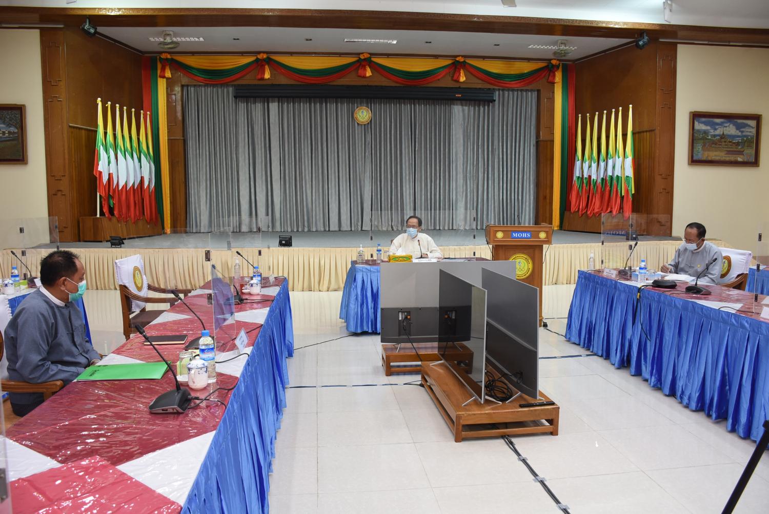 ရန်ကုန်နှင့် နေပြည်တော်ရှိ ဗဟိုအဆင့်ဆေးရုံများတွင် ဆေးရုံလုပ်ငန်း ပုံမှန်ပြန်လည် ဆောင်ရွက်နိုင်ရေး လုပ်ငန်းညှိနှိုင်းအစည်းအဝေးကို ယနေ့နံနက်ပိုင်းတွင် ကျန်းမာရေးနှင့်အားကစား ဝန်ကြီးဌာန COVID-19 Central Command Centre ၌ ကျင်းပသည်။