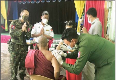 တပ်မတော်အနေဖြင့် တိုင်းစစ် ဌာနချုပ် နယ်မြေအသီးသီးရှိ ထေရ်ကြီးဝါကြီး ဆရာတော်ကြီး များအပါအဝင် လူမျိုးမရွေး၊ ဘာသာမရွေး အသက် (၆၅)နှစ် အထက် သက်ကြီးဘိုးဘွားများ၊ ဌာနဆိုင်ရာ ဝန်ထမ်းများနှင့် တိုင်းရင်းသား ပြည်သူ များကို COMD-19 ရောဂါ ကာကွယ်ဆေး ထိုးနှံနိုင်ရေးအတွက် ဆေးပစ္စည်း များအား တပ်မတော် လေယာဉ် များဖြင့် သယ်ယူပို့ဆောင်ပေးခြင်း များနှင့် ကာကွယ်ဆေးထိုးနှံပေး ခြင်းများကို ဆောင်ရွက် ပေးလျက် ရှိသည်။