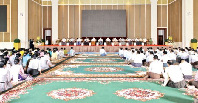 အခမ်းအနားတွင် နိုင်ငံတော်စီမံအုပ်ချုပ်ရေးကောင်စီ ဥက္ကဋ္ဌ တပ်မတော် ကာကွယ်ရေးဦးစီးချုပ် ဗိုလ်ချုပ်မှူးကြီး မင်းအောင်လှိုင် ကိုယ်စား ညှိနှိုင်းကွပ်ကဲရေးမှူး (ကြည်း၊ ရေ၊ လေ) ဗိုလ်ချုပ်ကြီး မောင်မောင်အေး က ဂါရဝပြုစကားပြောကြားသည်။ ယင်းနောက် တက်ရောက်လာကြသူများက တပ်မတော်(ကြည်း၊ ရေ၊ လေ) မိသားစုများ ကိုယ်စား အငြိမ်းစား တပ်မတော်အရာရှိကြီးများအား မြန်မာ့ရိုးရာထုံးတမ်းအစဉ်အလာ နှင့်အညီ ရိုသေစွာဖြင့် ဂါရဝပြုကန်တော့ကြသည်။