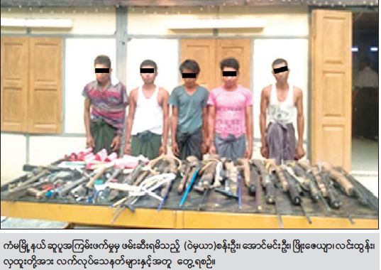 ဆူပူအကြမ်းဖက်သူများ အသုံးပြုလျက်ရှိသည့် လက်နက်များနှင့် ပစ္စည်းများ သိုဝှက်ထားမှုနှင့် ကိုင်ဆောင် မှုများကို လုံခြုံရေးတပ်ဖွဲ့ဝင်များက စစ်ဆေးရှာဖွေသတင်းထုတ် ဖမ်းဆီးထိန်းသိမ်း ခြင်းများ ဆောင်ရွက်လျက်ရှိသည်။ ။