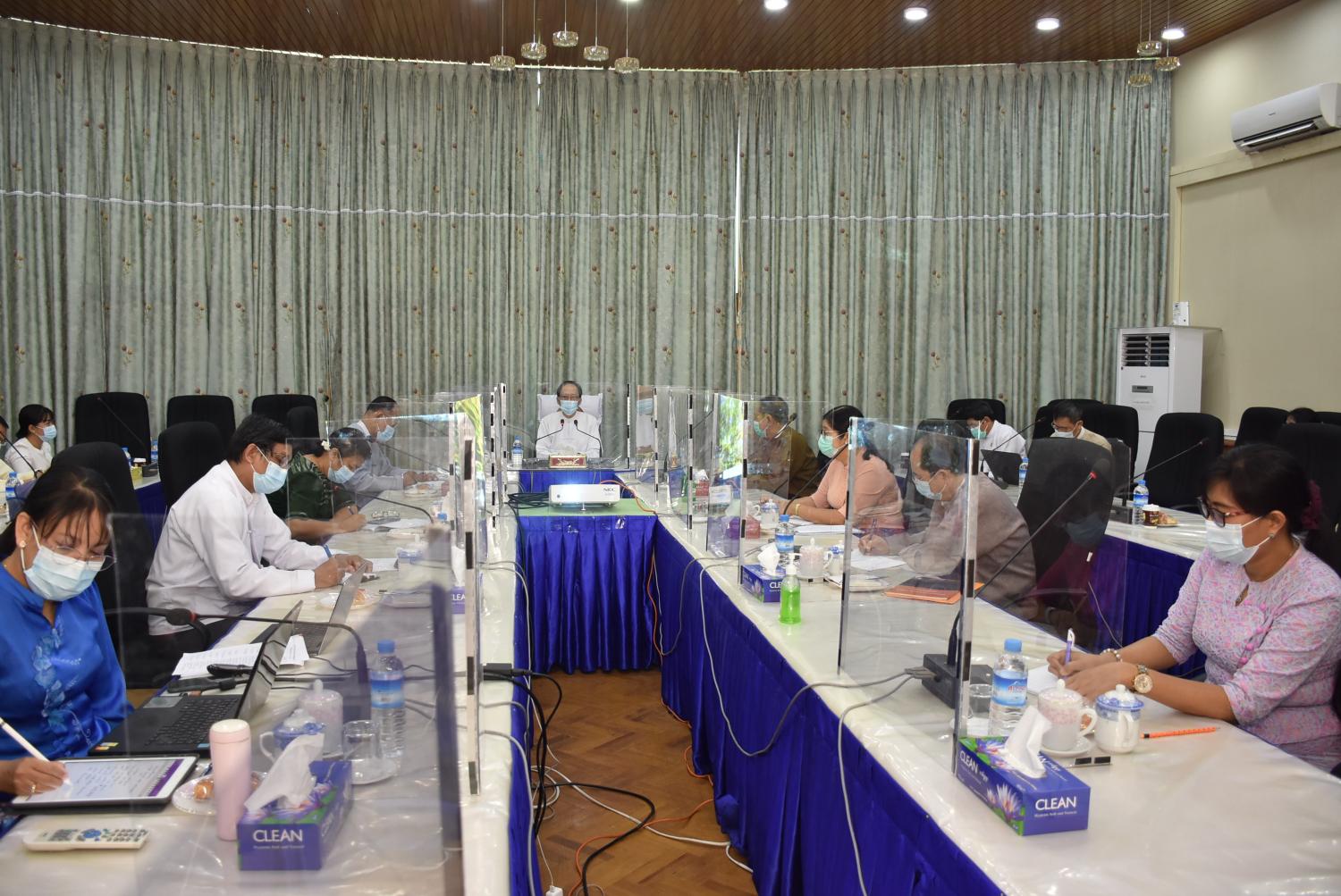 ကိုဗစ်-၁၉ ရောဂါ ကာကွယ်ထိန်းချုပ်ရေး လုပ်ငန်းညှိနှိုင်းအစည်းအဝေးကို ယနေ့နံနက်ပိုင်းက ပြည်သူ့ကျန်းမာရေးဦးစီးဌာန၊ ရုံးအမှတ် (၄၇) တွင် ကျင်းပသည်။
