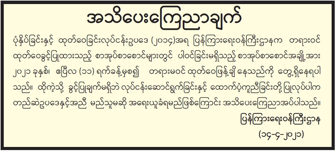 ဝန်ကြီးဌာန ကြေညာချက်များ