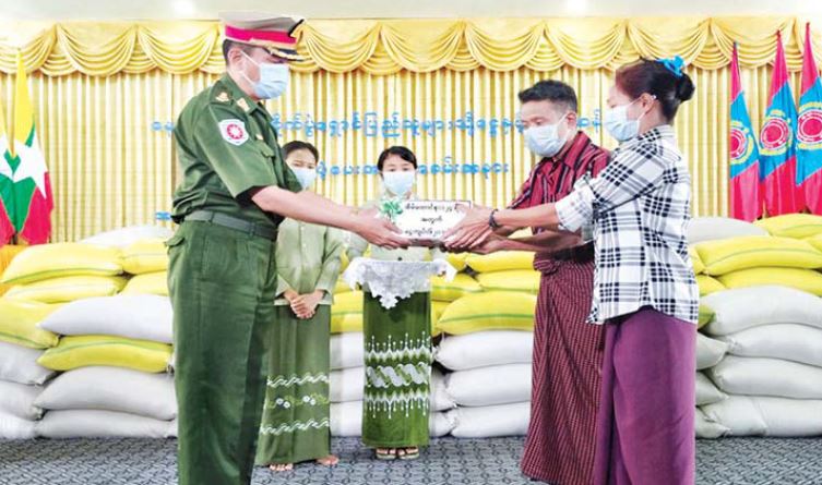 ထို့နောက် တိုင်းစစ်ဌာနချုပ် တာဝန်ရှိသူတစ်ဦးက တိုက်ပွဲ ရှောင်ဒေသခံပြည်သူအိမ်ထောင်စု တစ်စုလျှင် ငွေကျပ် ငါးသိန်းနှုန်း ဖြင့် အိမ်ထောင်စု ငွေကျပ် ၁၂၄ စုအတွက် ငွေကျပ်သိန်း ၆၂၀ ကို လည်းကောင်း၊ မြို့နယ်စီမံ အုပ်ချုပ်ရေးအဖွဲ့ ဥက္ကဋ္ဌမှ အိမ်ထောင်စု ၁၂၄ စုအတွက် တစ်လစာ ရိက္ခာဆန် ၁၃၁ အိတ်) ပြည်အား လည်းကောင်း အသီးသီးထောက်ပံ့ပေးအပ်ရာ နေရပ်ပြန်မည့် တိုက်ပွဲရှောင် ဒေသခံ ကိုယ်စားလှယ်များက လက်ခံရယူခဲ့ကြသည်။