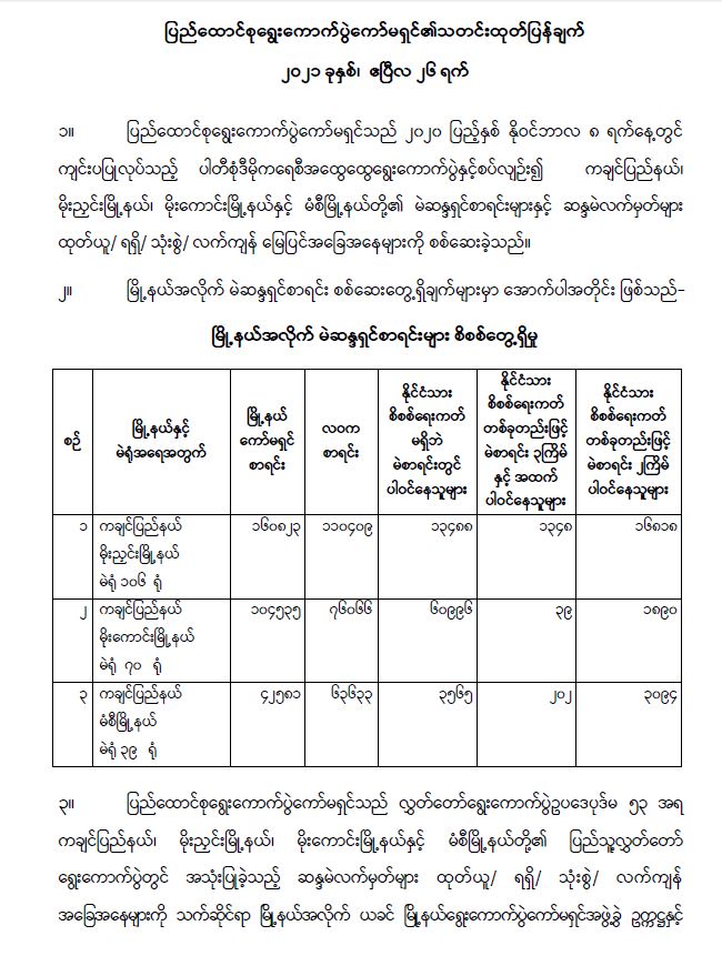 ပြည်ထောင်စုရွေးကောက်ပွဲကော်မရှင်၏သတင်းထုတ်ပြန်ချက် ၂၀၂၁ ခုနှစ်၊ ဧပြီလ ၂၆ ရက်