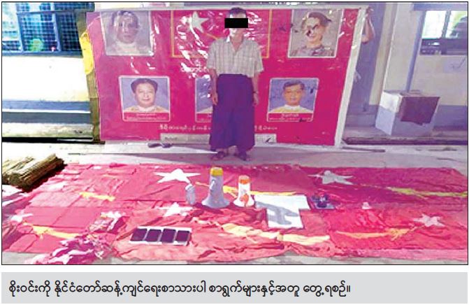 ထိုသို့ဆောင်ရွက်ခဲ့ရာ ၂၀၂၁ ခုနှစ်၊ မေလ ၁ ရက် နေ့ နံနက် ၃ နာရီတွင် ရန်ကုန်တိုင်းဒေသကြီး မြောက်ဥက္ကလာပမြို့နယ် အမှတ်(၂)ရပ်ကွက်နေ စိုးဝင်း (၅၄ နှစ်) (ဘ) ဦးဖိုးတော၏ နေအိမ်ကို သတင်းအရ ဝင်ရောက်ရှာဖွေခဲ့ရာ ၎င်းအား တွေ့ရှိရသဖြင့် ထိန်းသိမ်းခဲ့ပြီး ဆက်လက် ရှာဖွေခဲ့ရာ နေအိမ်အတွင်းမှ ပြည်ထောင်စုရွေးကောက်ပွဲ ကော်မရှင်အမှတ်တံဆိပ်ပါ မြောက်ဥက္ကလာပမြို့နယ် အမှတ်(၂)ရပ်ကွက် မဲဆန္ဒရှင်စာရင်းစာရွက် ၁၂၉ ရွက်၊ Hand Speaker နှစ်ခု၊ စပရေးဘူး သုံးဘူး၊ နိုင်ငံတော်ဆန့်ကျင်ရေးစာသားများပါ စာရွက် နှစ်ရွက်၊ လက်ကိုင်ဆိုင်းဘုတ်ပြုလုပ်ရာတွင် အသုံးပြုသည့် ဝါးချောင်း ၁၅၀ နှင့် အခြား ဆက်စပ် ပစ္စည်းများကို တွေ့ရှိသိမ်းဆည်းရမိခဲ့ သည်။