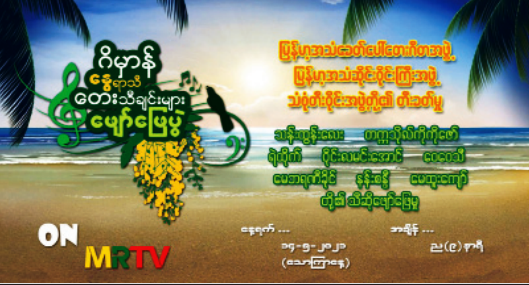 ဂိမှာန်နွေရာသီတေးသီချင်းများဖျော်ဖြေပွဲရဲ့ ပွဲစဉ်(၃)ကို မေ(၁၄)ရက်၊ ည(၈)နာရီ သတင်းအပြီး တွင် မြန်မာ့အသံနှင့်ရုပ်မြင်သံကြား၌ ထုတ်လွှင့်ပြသမည် ဖြစ်သည်။