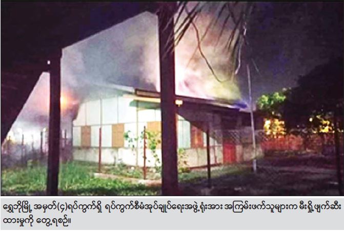 မြို့နယ်အချို့၌ နိုင်ငံတော်ပိုင် အဆောက်အအုံများအား ဆူပူအကြမ်းဖက်သူများက မီးရှိုးဖျက်ဆီးခြင်းများ ဆောင်ရွက်ခဲ့